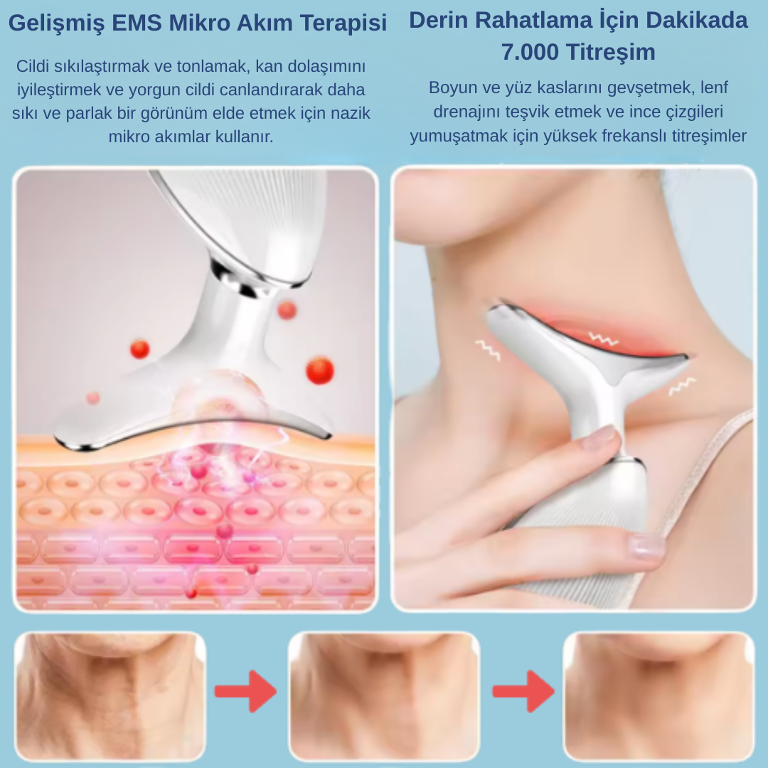 Piyasada gördüğünüz ucuz taklitlerin aksine, cihazımızın Kırmızı, Yeşil ve Mavi LED dalga boyları ile Mikro Akım gücü; cilt terapistleri ve uzmanlar tarafından önerilen sınırlar içinde kalıcı sonuçlar sunmak üzere optimize edilmiştir.