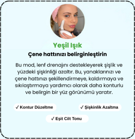 -Yüzünüzü, boynunuzu ve çene hattınızı şekillendirin, sıkılaştırın ve belirginleştirin (Yeşil Işık LED Terapisi)